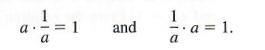 MULTIPLICATIVE INVERSES For every nonzero real number a, there is a multiplicative inverse l/a such that