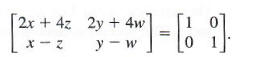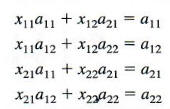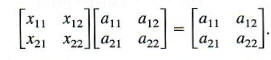 Notice that this is really two systems of equations in two variables. Use one of the methods of the previous chapter to find the solution of this system: x11 = 1, x12 = x21 = 0, and X22 = 1. From the solution of the system, the 2 X 2 identity matrix is