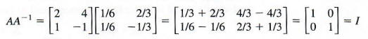 By the definition of matrix inverse, AA^(-1) = 1, or