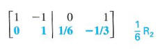 Now, to get a I in the second-row, second-column position, multiply the second row by 1/6.