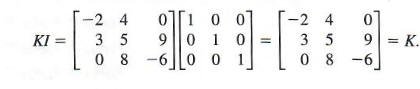 Given the 3 X 3 identity matrix I and show that KI = K.
