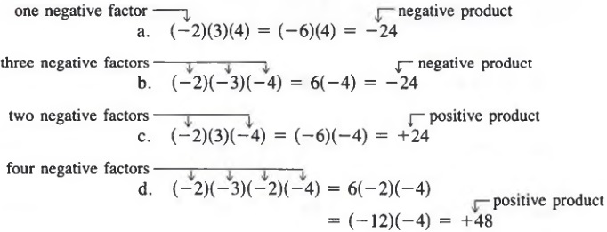 Again, we assume that the commutative and associative laws of mulitplication hold for signed numbers. For example, by the commutative law,