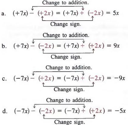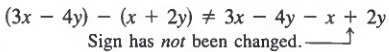 In expressions involving addition and subtraction, parentheses preceded by a minus sign may be dropped, provided the sign of each term inside the parentheses is changed when the expression is written without parentheses.