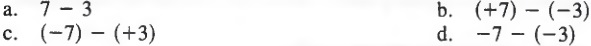 We have now used the symbol "-" to indicate a sign of operation (subtraction) and to indicate negative numbers. We also use the symbol " to mean the "opposite" or "negative" of a number.