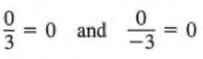 As for whole numbers, a quotient equals zero if the dividend is zero and the divisor is not zero. And as always, division by 0 is undefined. For example,