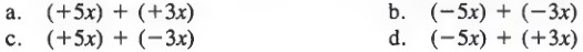 In algebra, we usually write sums horizontally. Thus, we would write the sum of +5 and +3 as