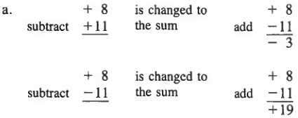 To subtract an integer b from an integer a, change the sign of b and add the two integers.