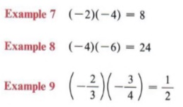 In multiplying or dividing signed numbers the product or quotient of two numbers with like signs is positive and the product or quotient of two numbers with unlike signs is negative.