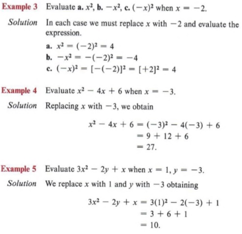 In chapter 1 we evaluated literal expressions using only the numbers of arithmetic. We now are able to evaluate expressions that involve signed numbers.