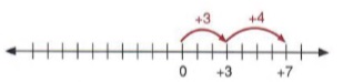 Example 4 + 3 + 4 = +7 indicates "start at zero, move three units to the right, then move four units to the right." The result is a movement of seven units to the right.