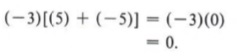 Now consider this problem. Find the result of ( - 3) [(5) + ( - 5)]. If we note that (5) + ( - 5) = 0, then we have