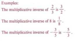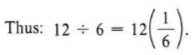 In a problem such as 12 divided by 6, we are dividing by 6. Using the definition, the problem is the same as multiplying by the multiplicative inverse (or reciprocal) of 6, which is