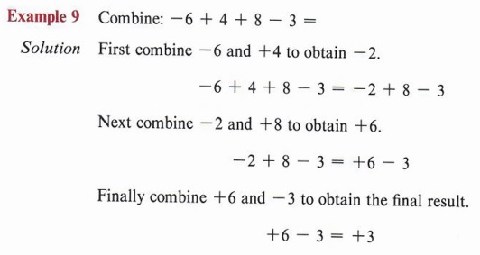Note again that rules for combining signed numbers apply to only two numbers at a time. If an expression contains several numbers, we must apply the rules more than once.