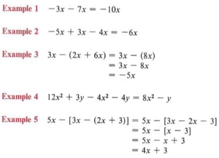 In chapter 1 we defined like terms as terms that have exactly the same literal factors. We also noted that only like terms can be combined. We will now apply those same rules to terms involving signed numbers.