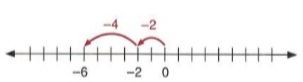 Example 5 -2 - 4=-6 indicates "start at zero, move two units to the left, then move four units to the left." The result is a movement of six units to the left.