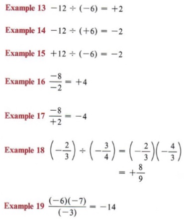 This relationship ties division and multiplication together so that the rules for signs in division are the same as the rules for signs in multiplication. For convenience we will restate the rules as a single rule.