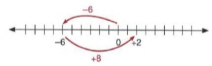 Example 6 - 6 + 8 = +2 indicates "start at zero, move six units to the left, then move eight units to the right." The result is a movement of two units to the right.