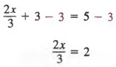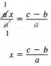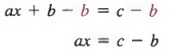 Example 3 In the equation ax + b = c, solve for x in terms of a, b and c.