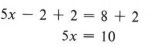 Example 5 Solve for x: 3x - 2 = 8 - 2x