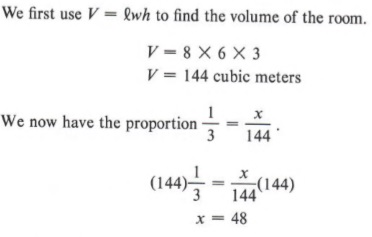 | This means "1 person is to 3 cubic meters as x people are to 144 cubic meters." Check the solution. |