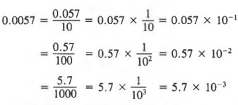 Now, let us consider some factored forms of 0.0057 in which one of the factors is a power of 10.